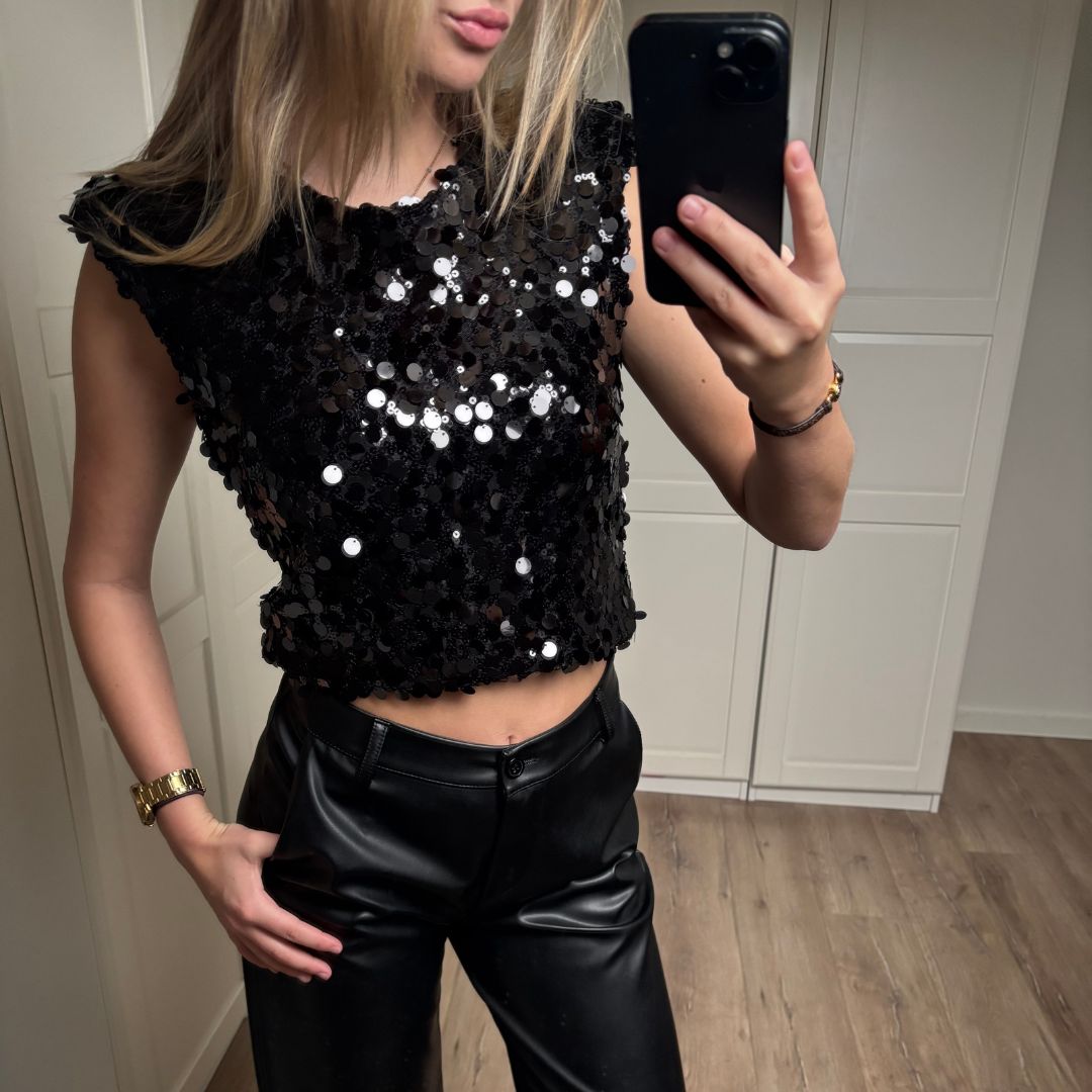 De Jane top is het perfecte, unieke feestitem dat je niet kunt missen in je garderobe! De stof is mooi met pailletten, geweldig voor een feestje! Het is een One size en kan gedragen worden vanaf XS tot een L!