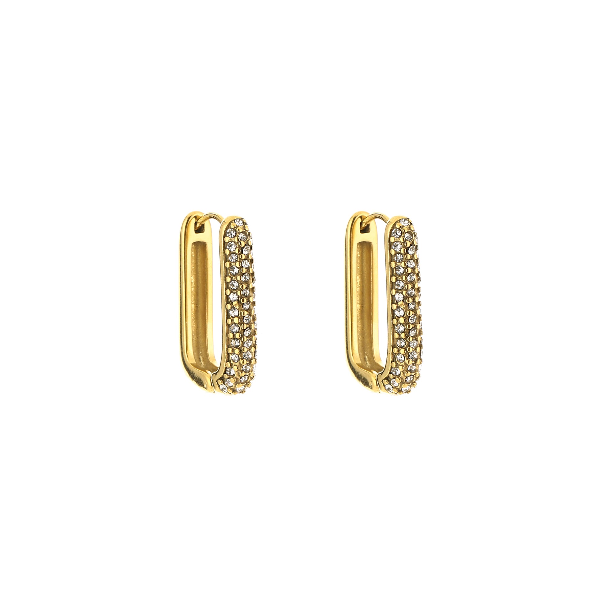 Shine like never before met deze rechthoekige oorbellen vol strass. Het strakke design en de sprankelende steentjes maken ze edgy én elegant – de perfecte match voor een night out, feestje of festival. Draag ze met een sleek kapsel en let the sparkle speak.