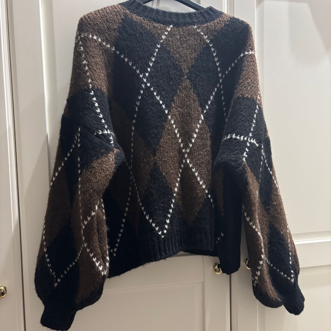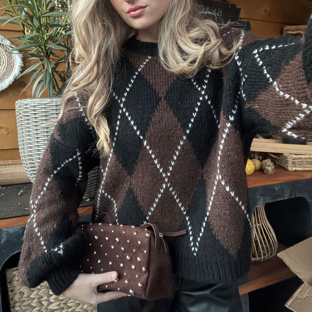 Deze zachte knit trui met stijlvol ruitenpatroon is een echte must-have voor het seizoen. De comfortabele pasvorm, luxe uitstraling en subtiele stretch maken hem perfect voor zowel casual als chique outfits. Combineer eenvoudig met jeans, rok of pantalon voor een moeiteloos stijlvolle look. Het is een One size en kan gedragen worden vanaf XS tot een L!