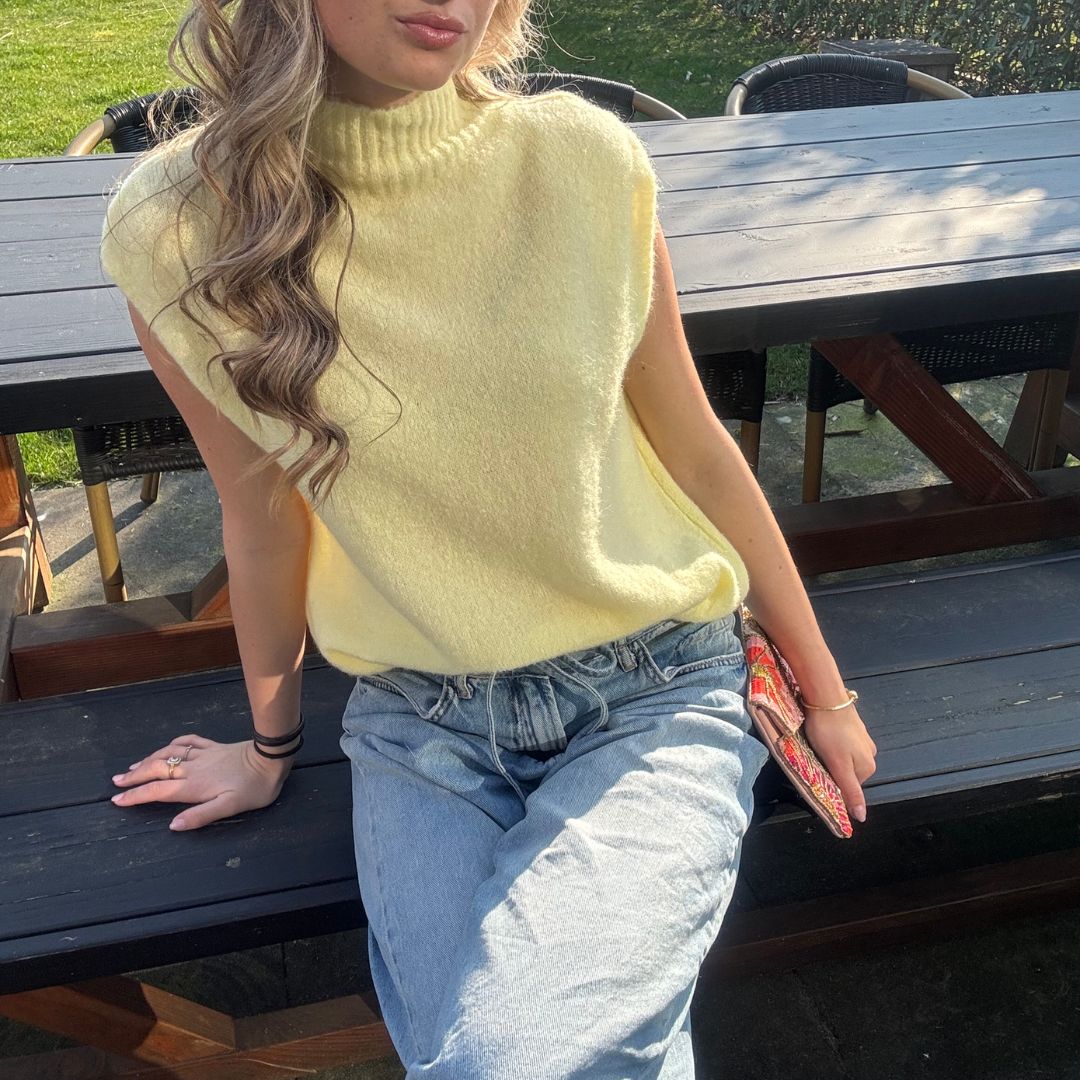 Deze spencer is zo'n item dat je overal aantrekt. Het zachte breisel voelt heerlijk aan en het hoge nekje maaakt 'm perfect voor een wat koudere dag. Of je 'm nu draagt met je favoriete jeans of onder een jasje, dit truitje geeft je altijd die moeiteloze chique look. Het is een One size en kan gedragen worden vanaf XS tot een L!