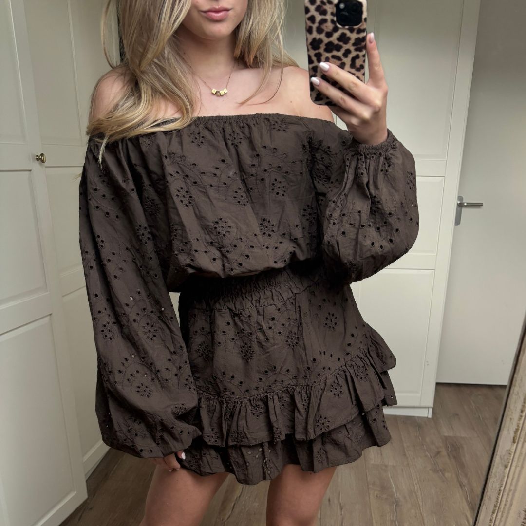 De Mira set is het perfecte, zomerse item dat je niet kunt missen in je garderobe! De stof is mooi van kwaliteit met een geweldige broderie stof, geweldig voor deze zomer als je lekker bruin bent! Het setje bestaat uit een offshoulder top met een broekrokje! De set bevat ook stretch. Het is een One size en kan gedragen worden vanaf XS tot een L!