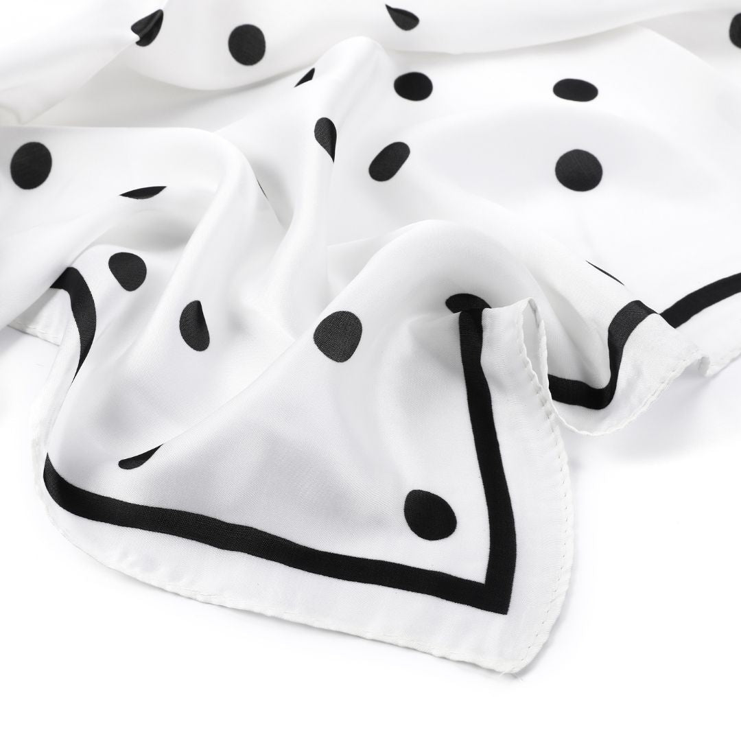 Dit witte sjaaltje met speelse stippen is het perfecte accessoire om elke look af te maken. Draag ’m nonchalant om je nek, knoop ’m in je haar of style ’m aan je tas of broek voor een instant fashionable touch. Licht, luchtig en eindeloos te combineren – dit sjaaltje geeft je outfit net dat beetje extra flair. Een kleine musthave met groots effect. ✨